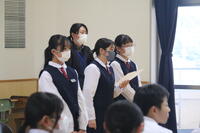 1年生は、クラスの仲間とのコミュニケーションを深めるため、朝の会を大切にしています。元気な挨拶と心を合わせた歌声練習も頑張っています。ただ、インフルエンザ予防対策で、壁に向かって練習しています!2年生が、学年閉鎖のため、全校生徒が協力し、登下校時の手洗いうがいの励行や教室の換気を意識するなど、予防対策に努めています。健康管理を徹底することで、3年生に影響がないようにします。安心して学校生活を送れる環境を維持しています。良い一日を元気にスタートさせています。