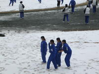 あいにく大会途中から雪が降り始め、今後の天候悪化と選手の安全確保を考慮し、急遽午前中に終了できるようにトーナメント戦へと試合形式を変更しての開催となりました。